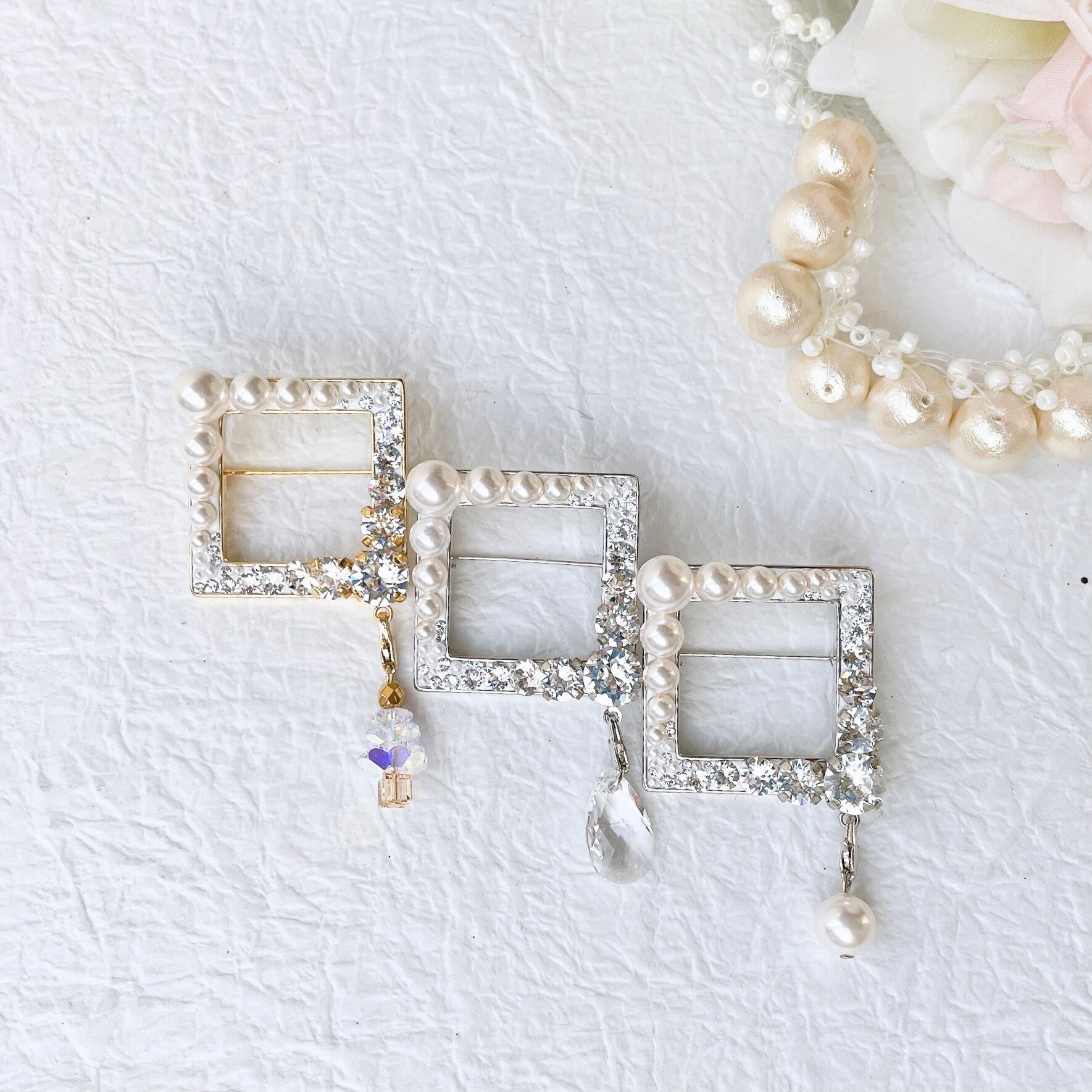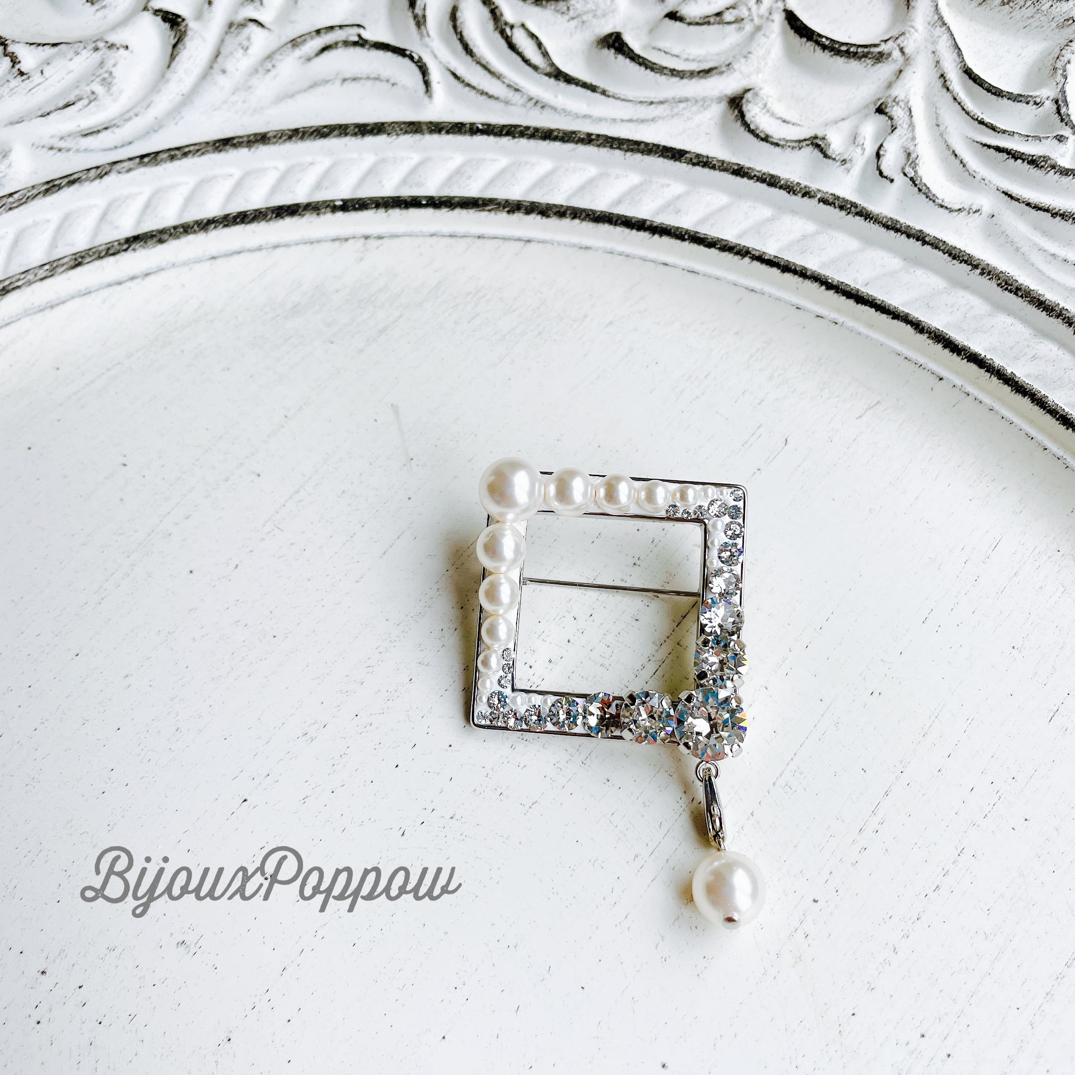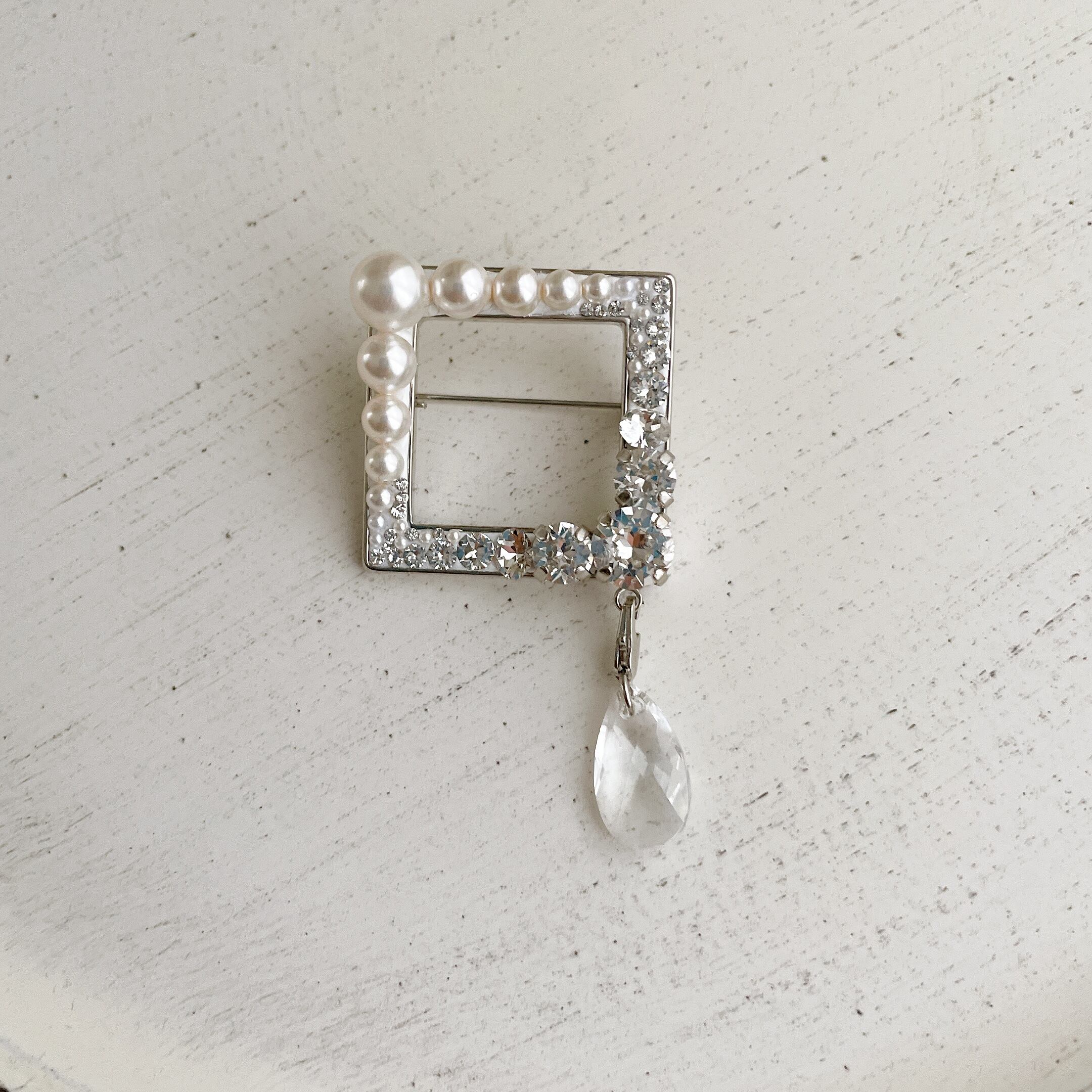 スワロフスキーパールのスクエアブローチ